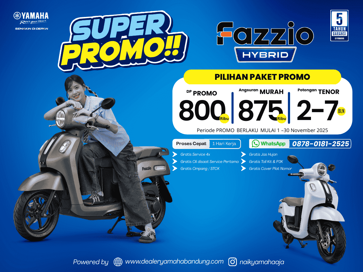 Promo cash dan kredit Yamaha Fazzio Lux untuk wilayah Kota Bandung, Kabupaten Bandung, Kota Cimahi, dan seluruh area Jawa Barat.
